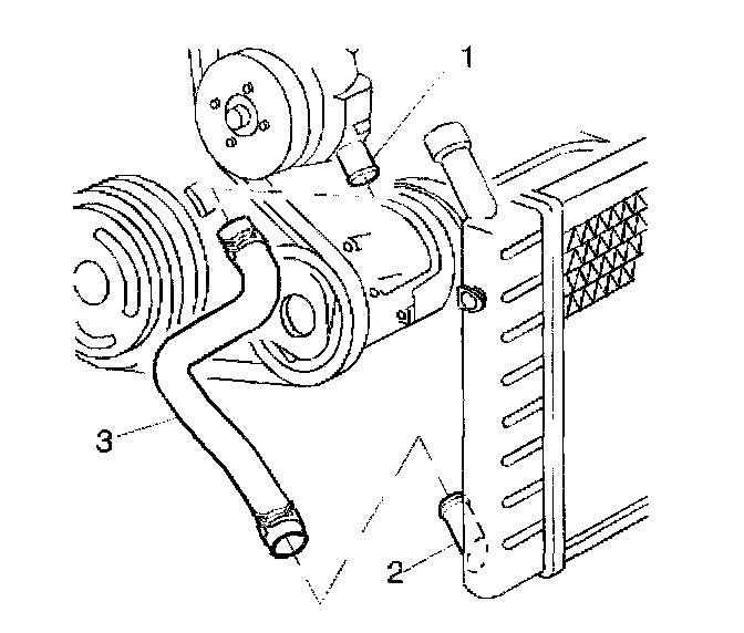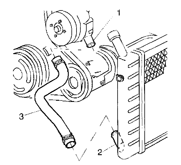5. Disconnect the outlet hose (3) from the radiator (2).