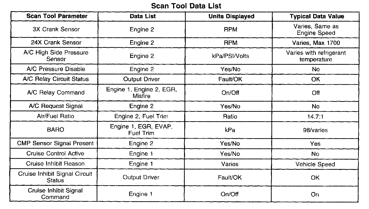 Scan Tool Data List - Powertrain System