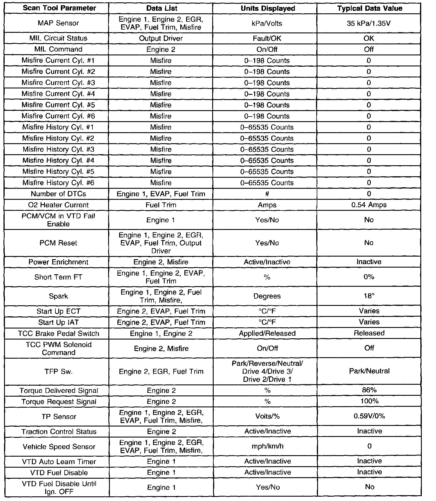 For scan tool parameter definitions, refer to Scan Tool Data Definitions. Scan Tool Data, Normal Values and Definitions