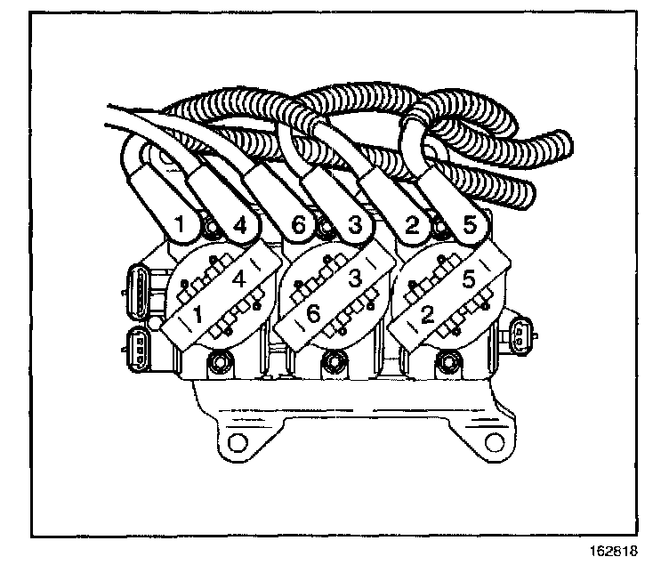 5. Install the spark plug wires 2, 4, and 6 to the engine left side spark plugs.
