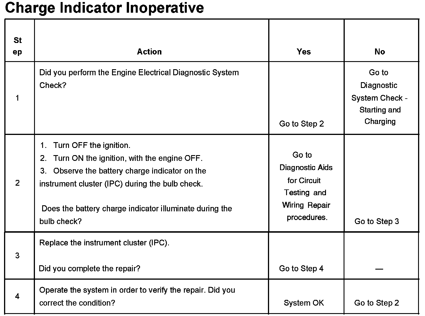 Charge Indicator Inoperative