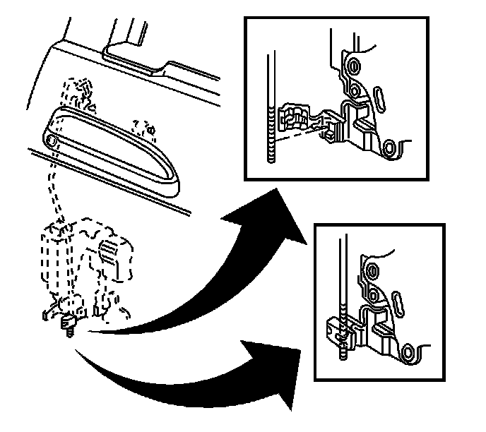 5. Install the lock cylinder rod to the outside door handle. Refer to Lock Cylinder Replacement - Door (Removal and Replacement) .