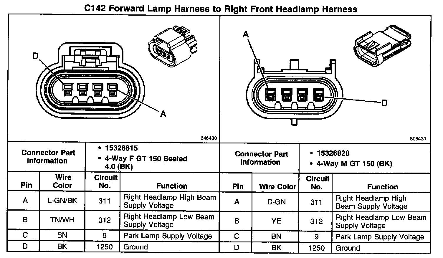 C142 Forward Lamp Harness To Right Front Headlamp Harness: