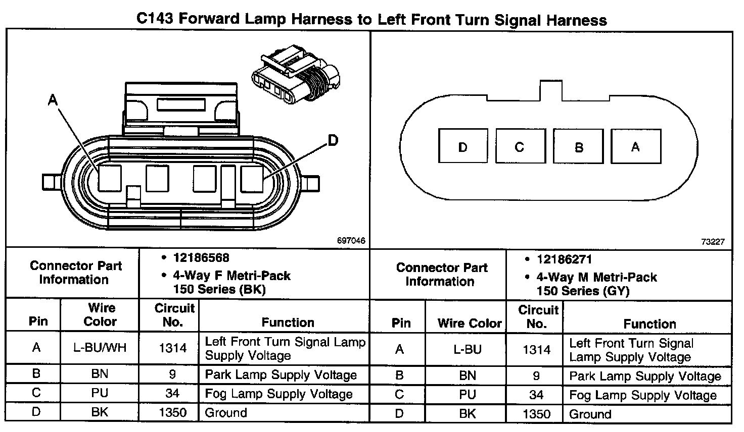 C143 Forward Lamp Harness To Left Front Turn Signal Harness: