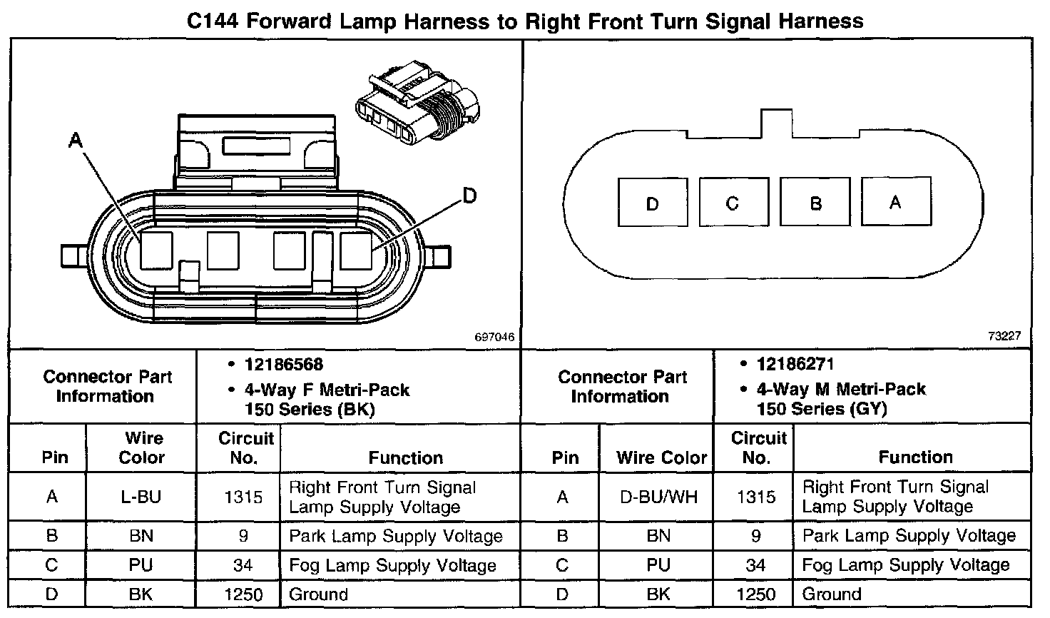 C144 Forward Lamp Harness To Right Front Turn Signal Harness: