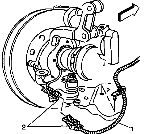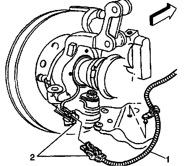 7. Connect the wheel speed sensor electrical connector (2), if equipped.