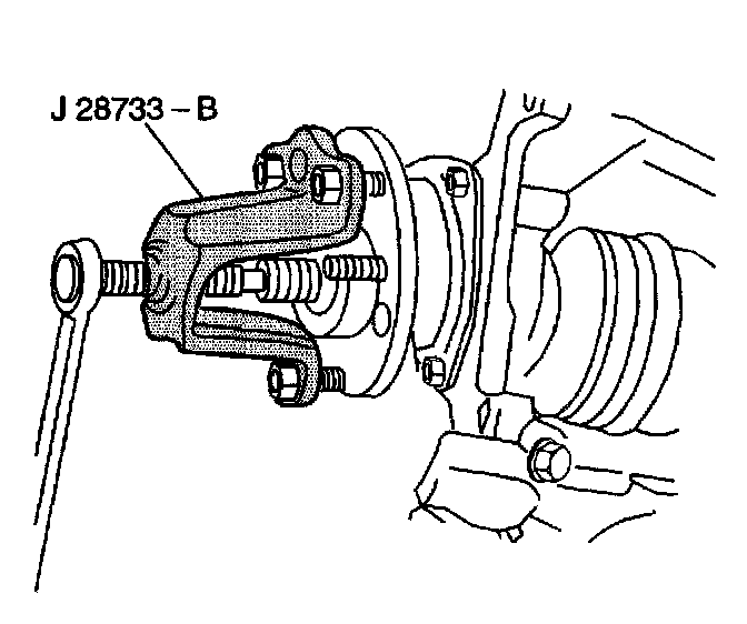 9. Use the J28733-B in order to push the wheel drive shaft out of the wheel bearing/hub.