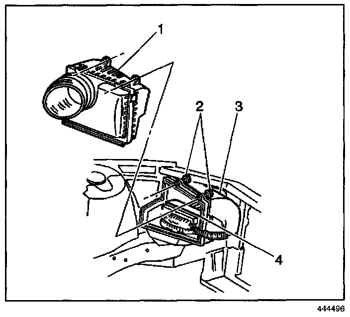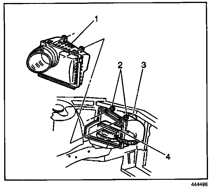 2. Install the PCM and the wiring harness to the air cleaner housing assembly (3).