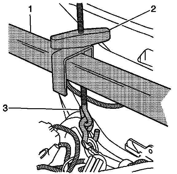 30. Attach the one power steering cooler line retainer to the right side of the frame.