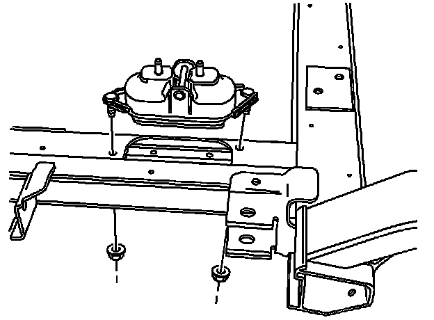 35. Align the left side transmission mount to the frame and install the two nuts.