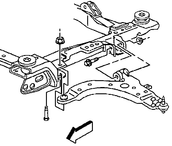 The following procedure provides instructions for inspecting, and if necessary, replacing the front frame (cradle) assembly.1. Raise the vehicle on a suitable hoist and support as necessary.