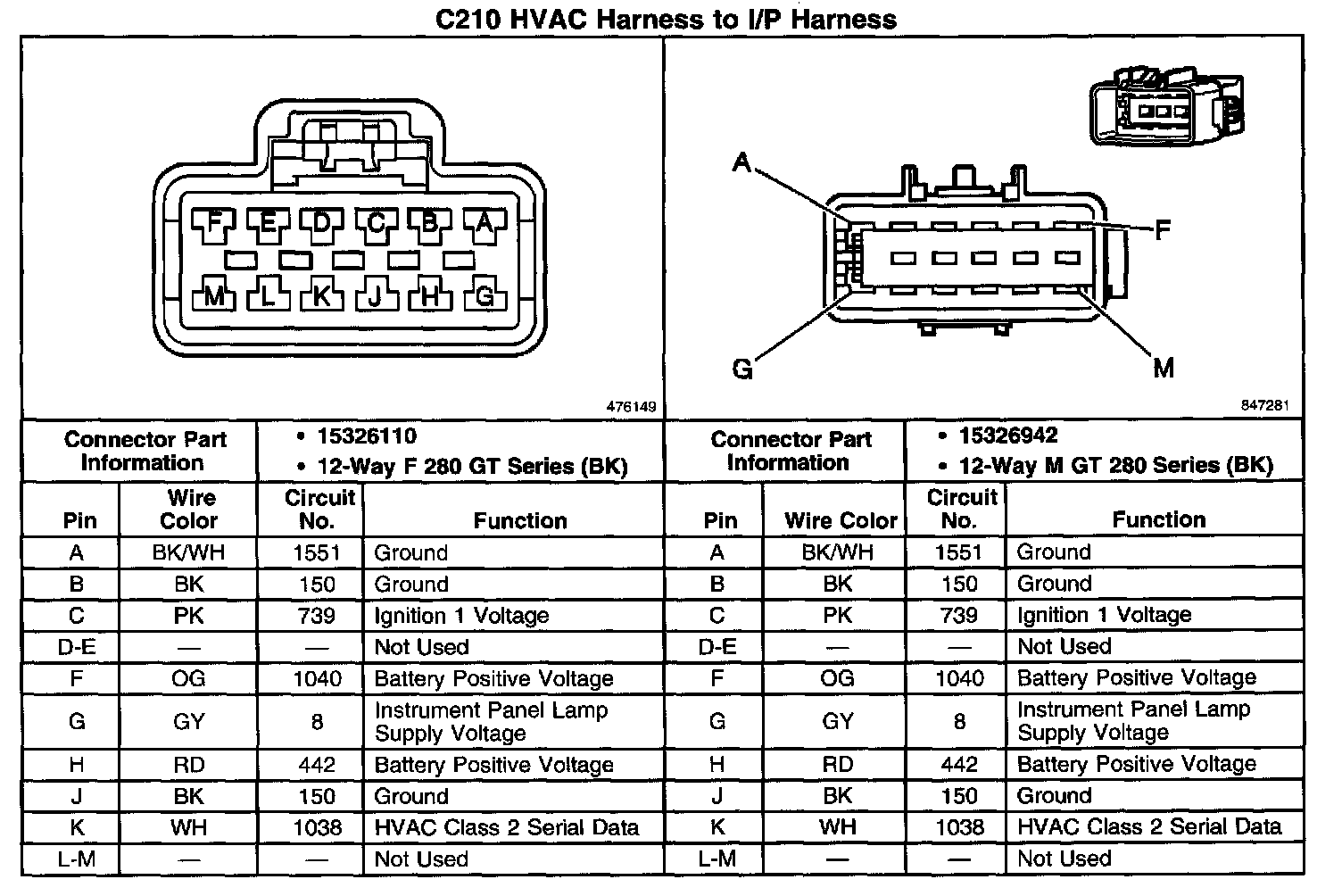 C210 HVAC Harness To I/P Harness: