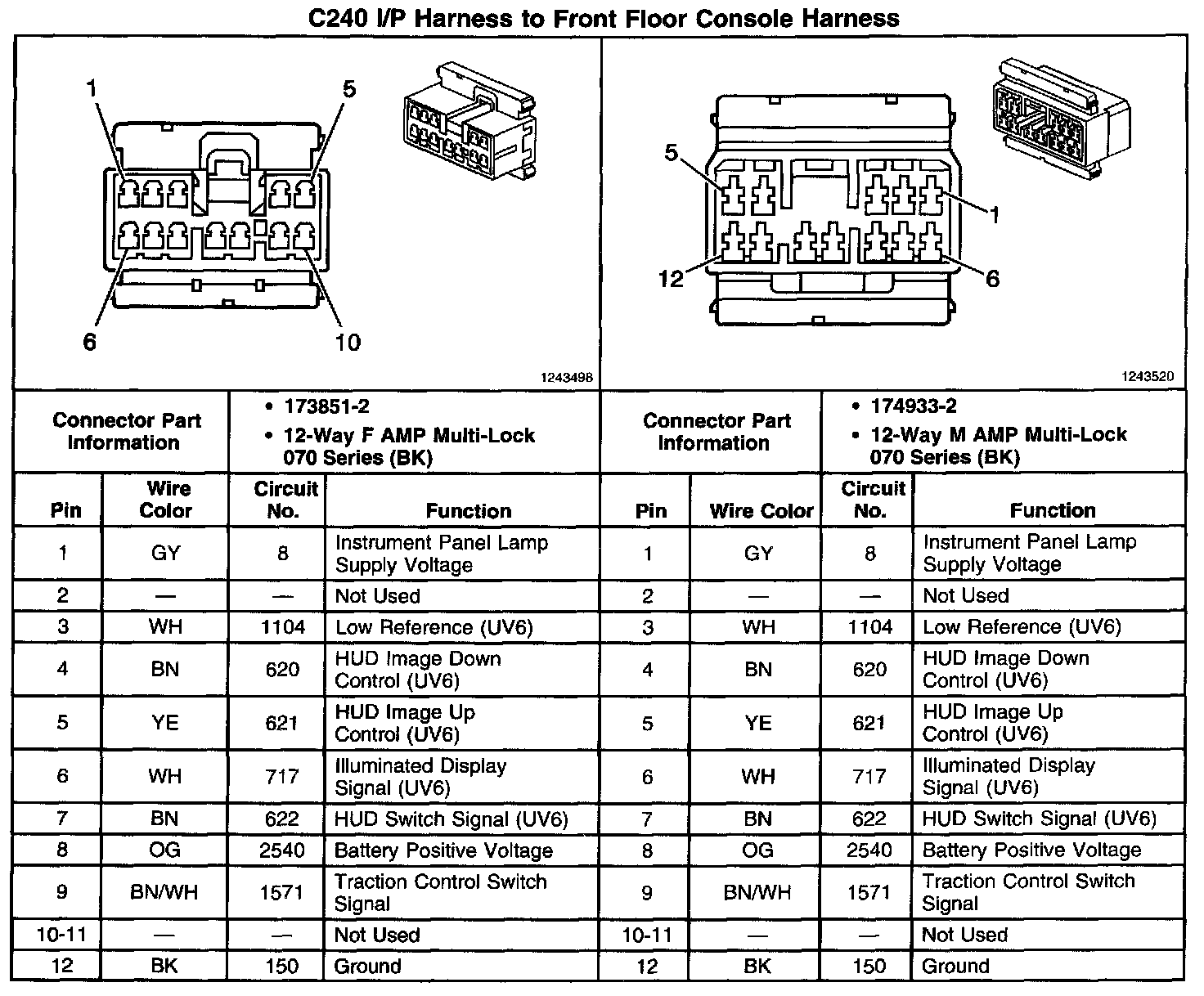C240 I/P Harness To Front Floor Console Harness: