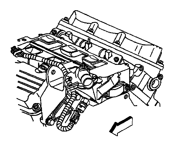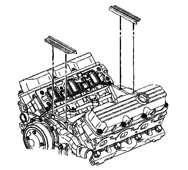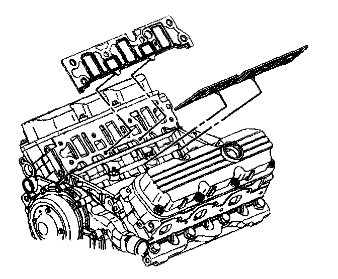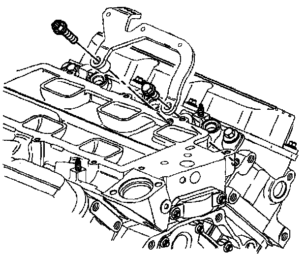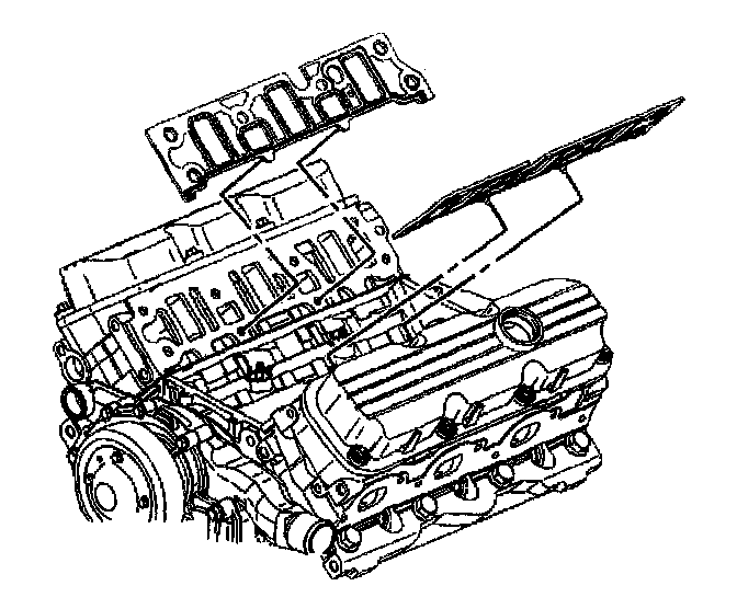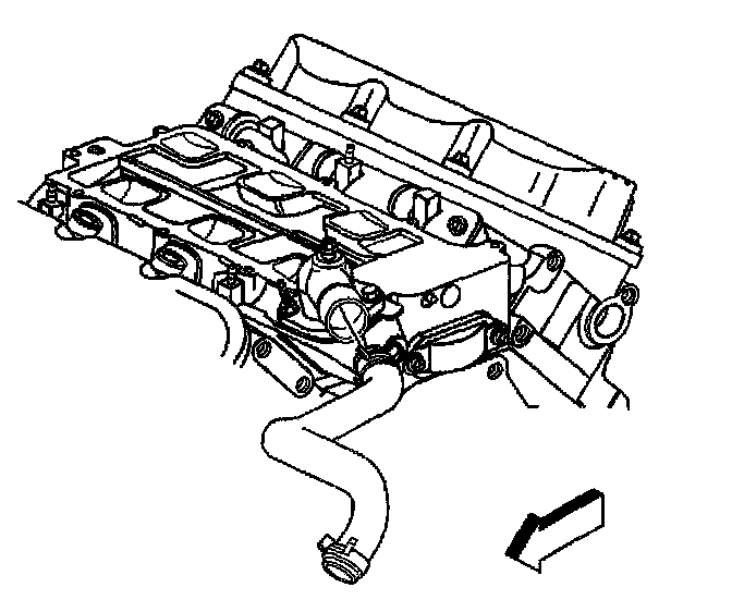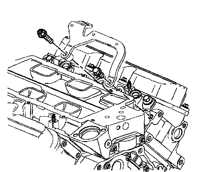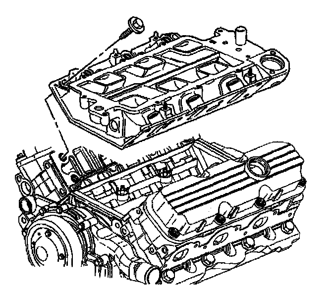 Removal ProcedureNotice: The two bolts which fasten the lower intake manifold to the cylinder head are accessible only after the upper intake is removed. The bolts are located in the right front and left rear corners of the lower intake manifold. Remove the upper intake manifold to service the lower intake.