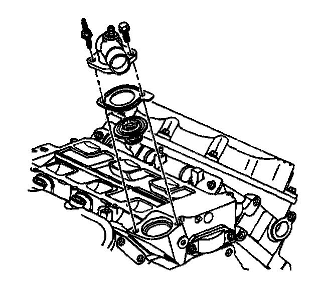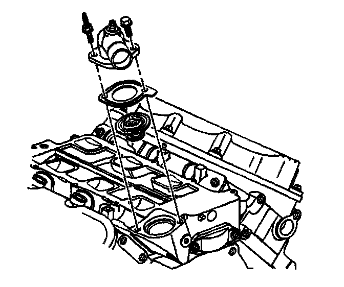 2. If removed, install the thermostat, the gasket, and the water outlet housing.
