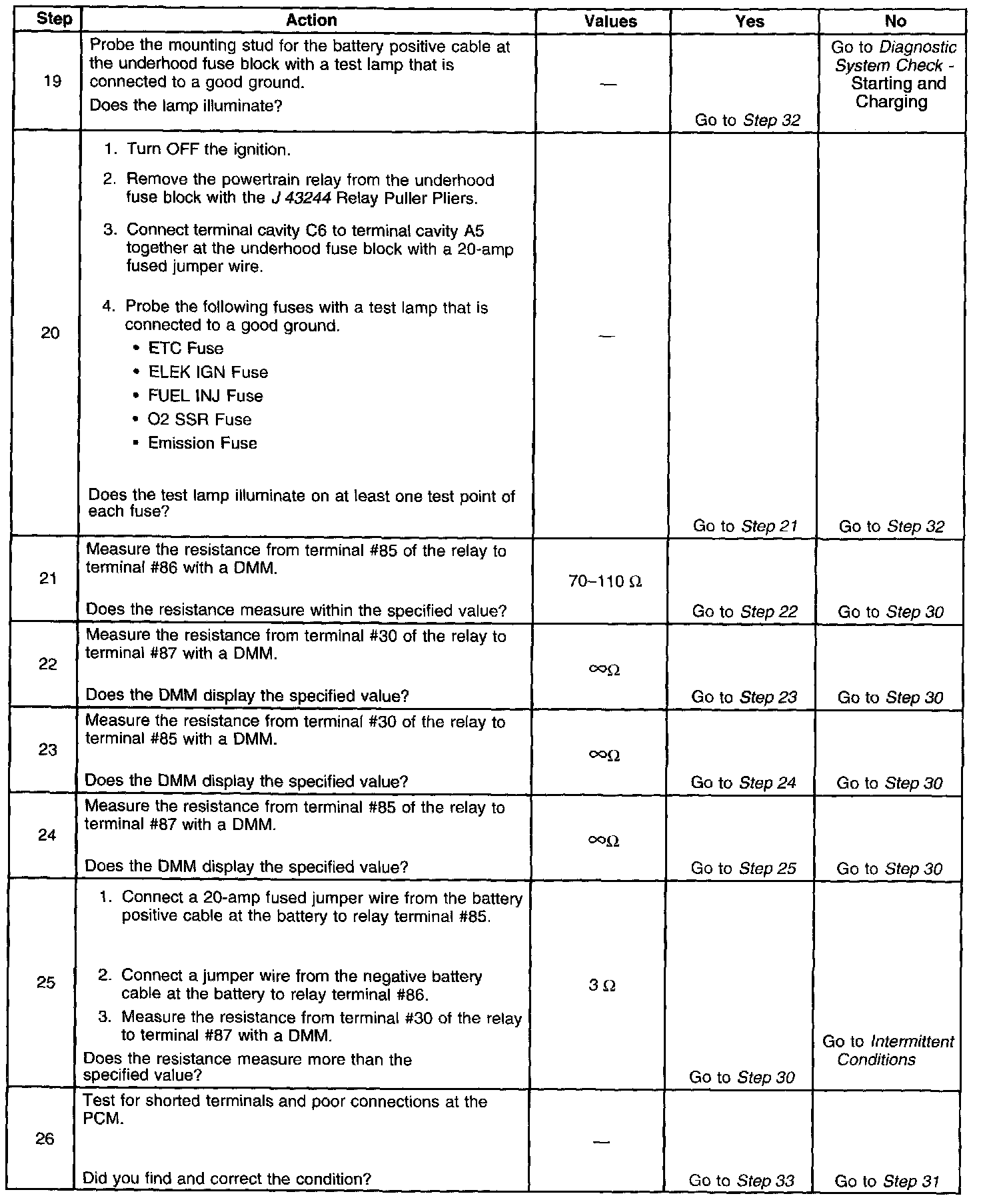 The powertrain relay system diagnosis table assumes that the vehicle battery is fully charged.