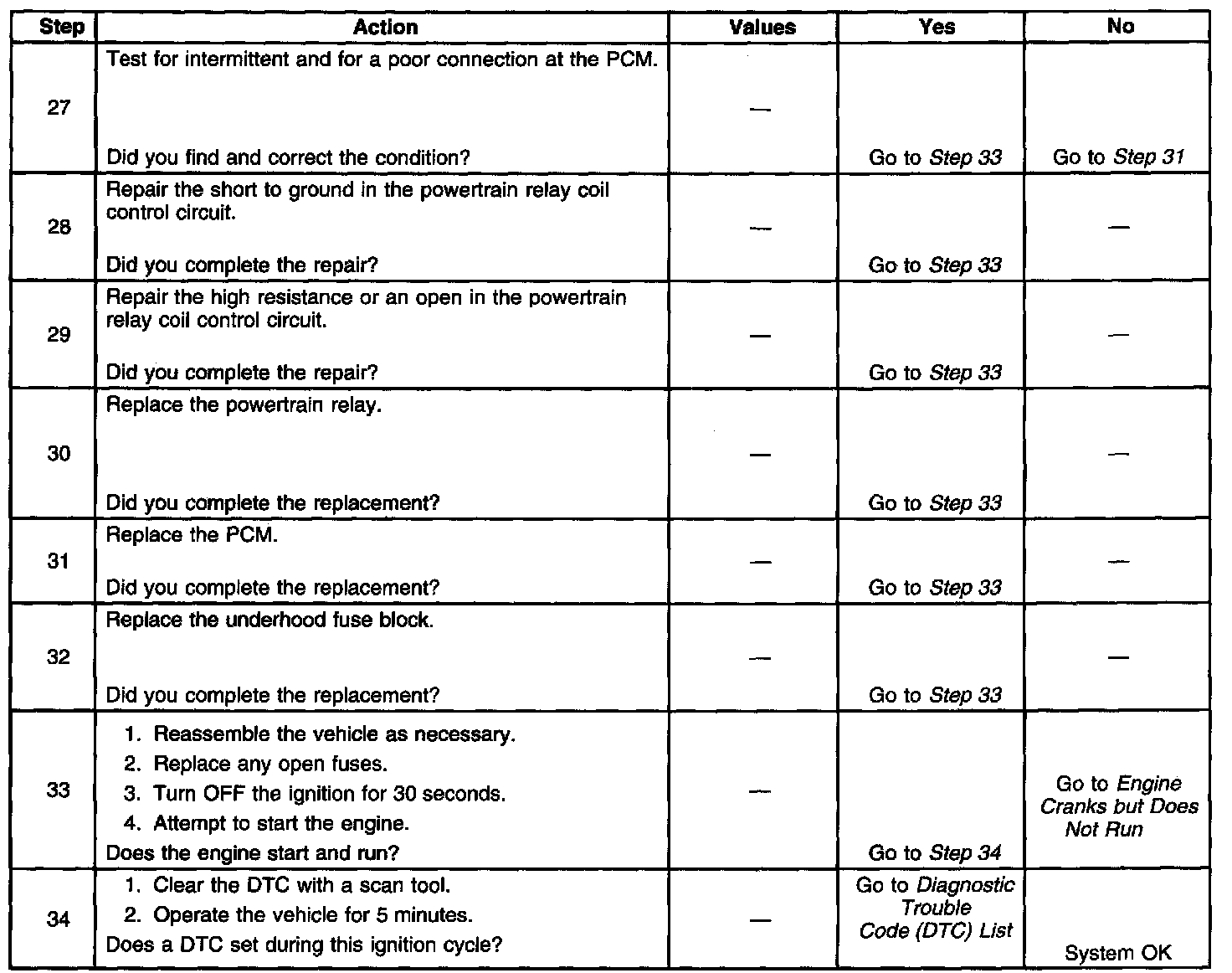 If the powertrain relay fails to close, the engine will crank, but will not run. The class 2 communications will be available with the use of a scan tool.