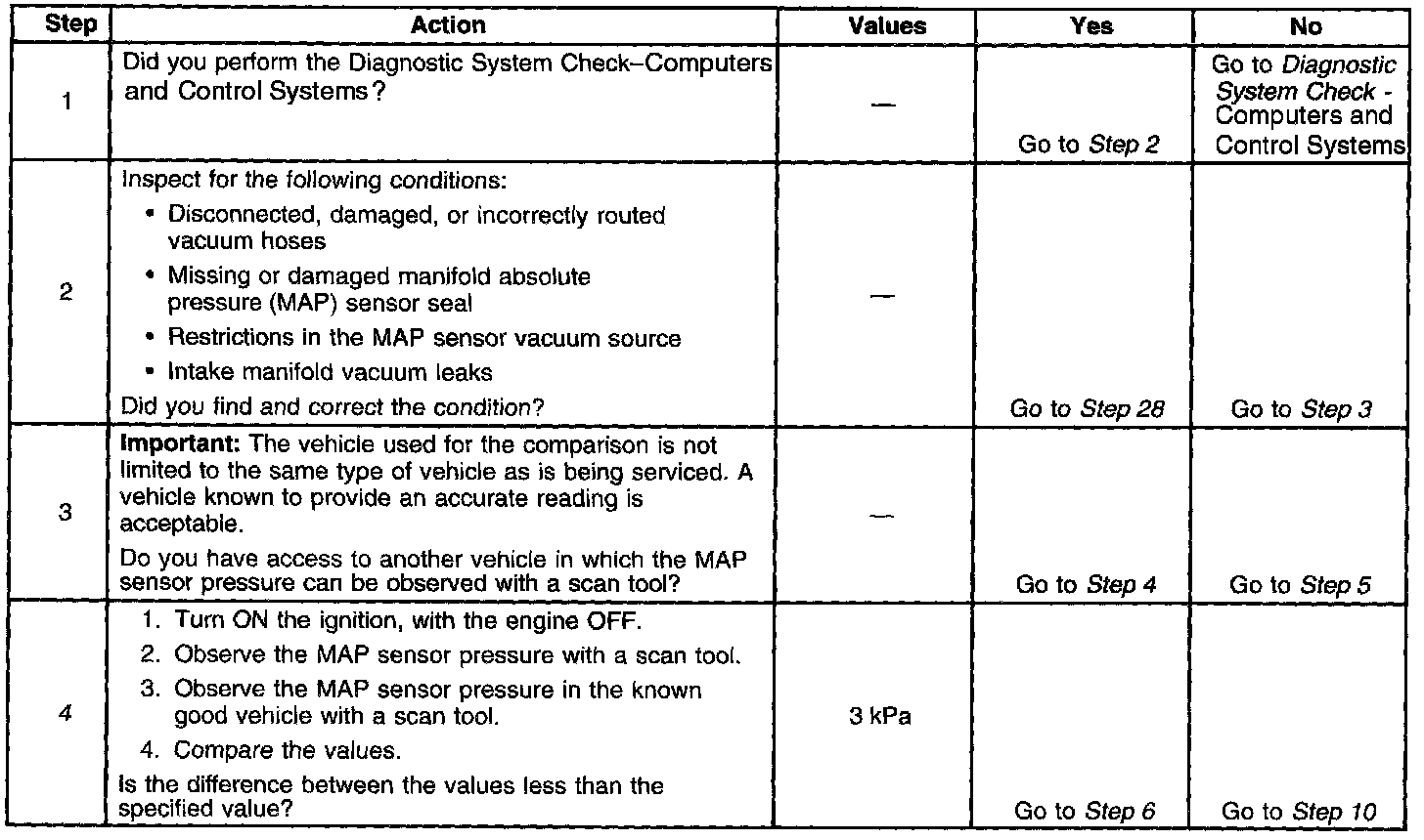 Manifold Absolute Pressure (MAP) Sensor Diagnosis