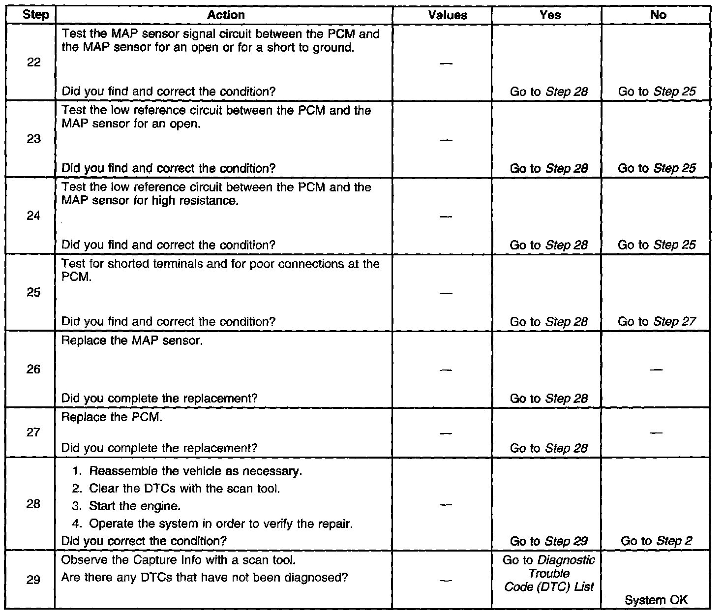 The number below refers to the step number on the diagnostic table.