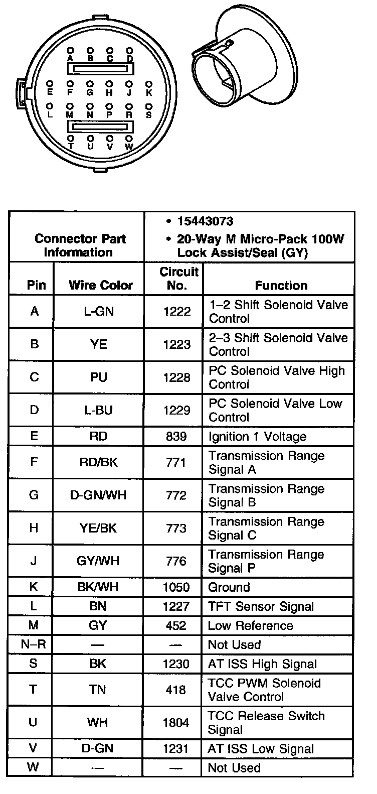 AT Inline 20-way Connector, Transmission Side: