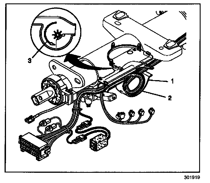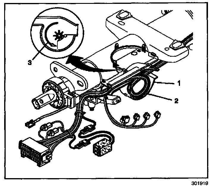 IMPORTANT: Note the direction that the steering column wiring harness is routed for re-installation.