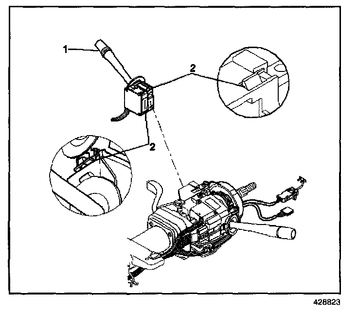 1. Install the windshield wiper and washer switch (2) to the steering column.