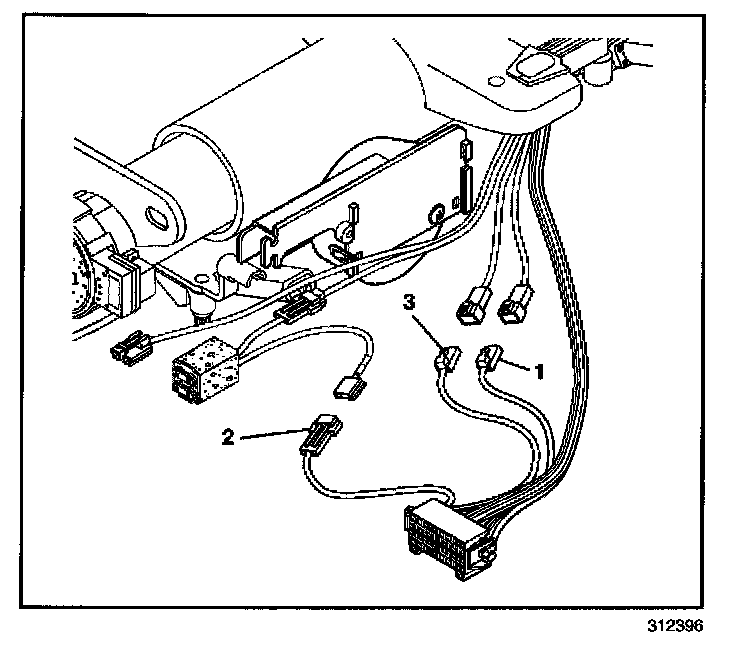 6. Disconnect the electrical connectors (1,3) from the windshield and washer switch.