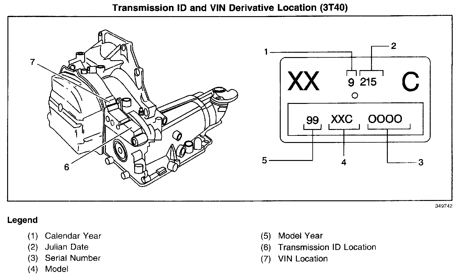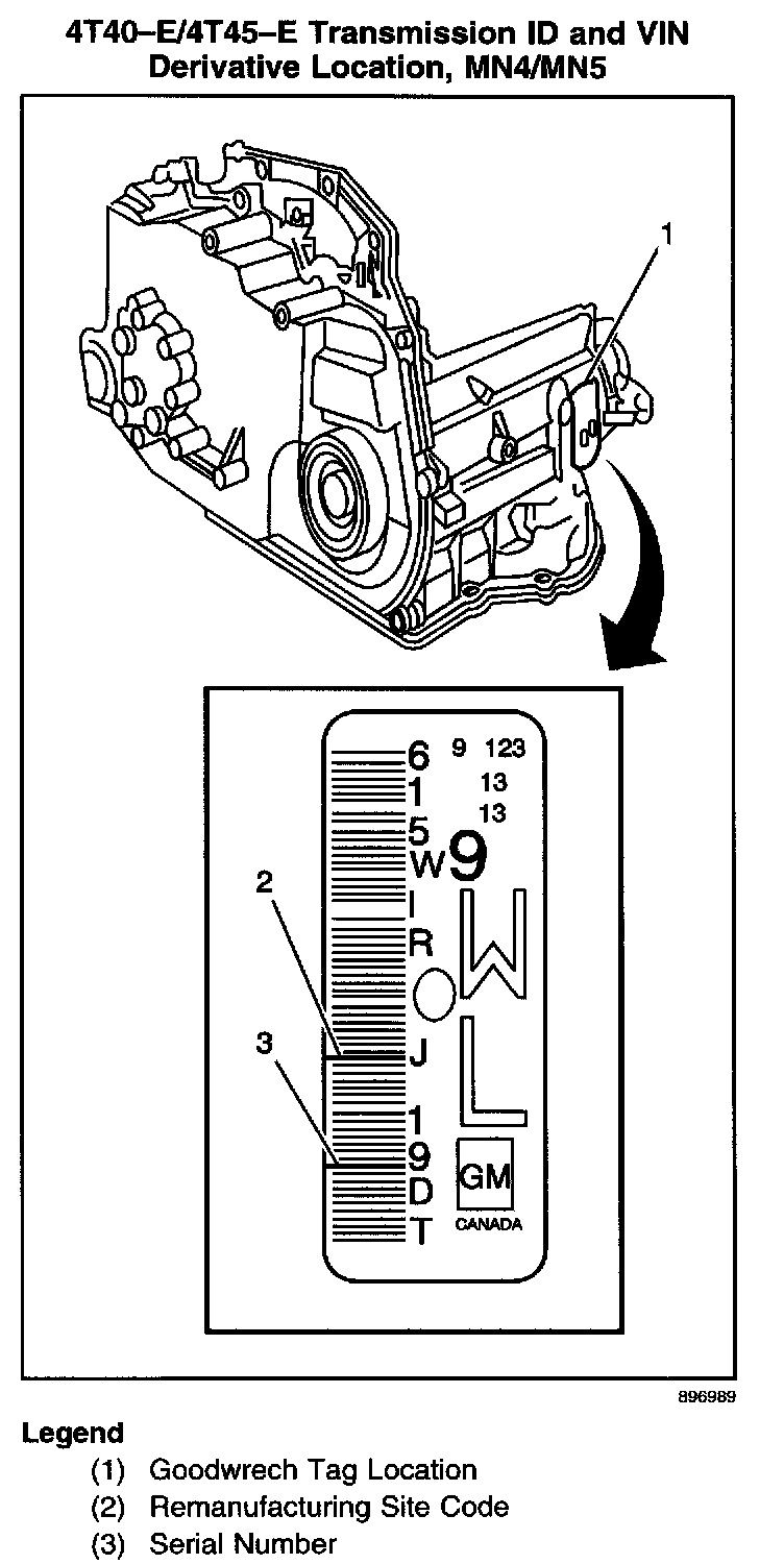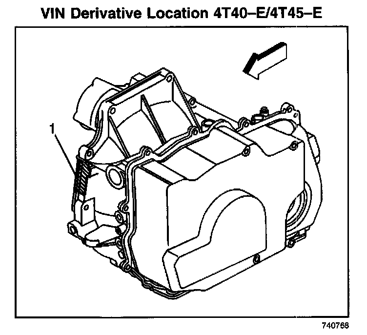 TRANSMISSION ID AND VIN DERIVATIVE LOCATIONAll automatic transmissions have a metal identification (ID) nameplate (1) attached to the case exterior.
