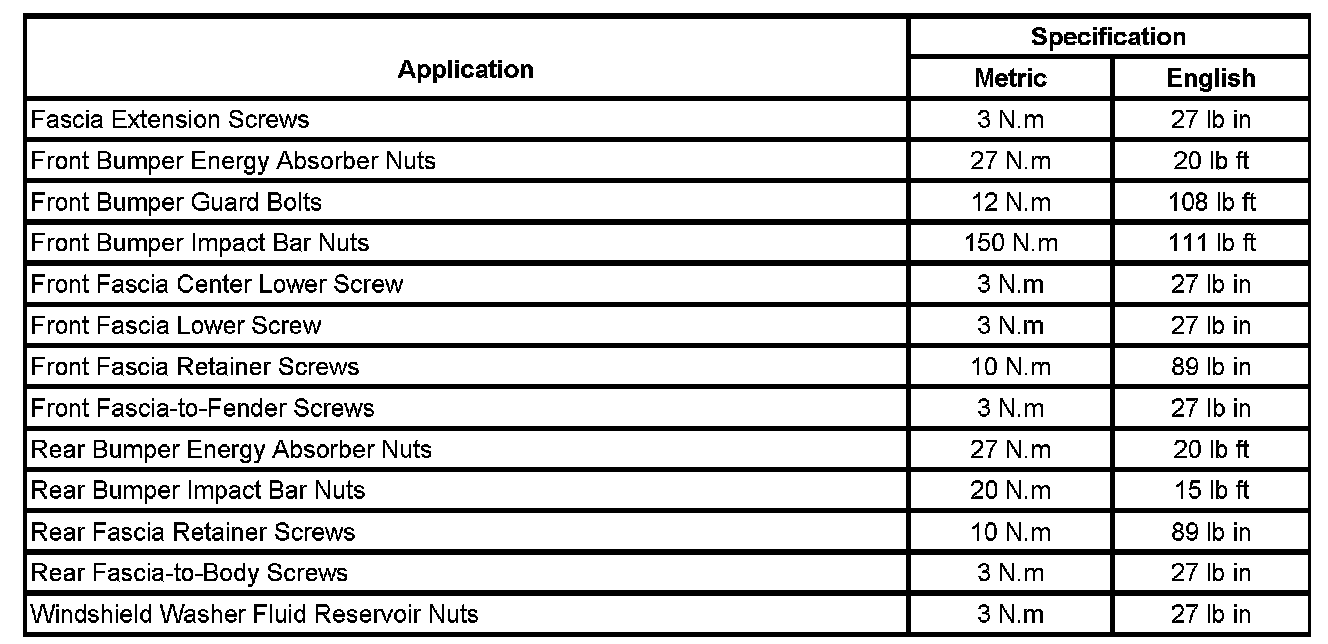 Bumper: Specifications