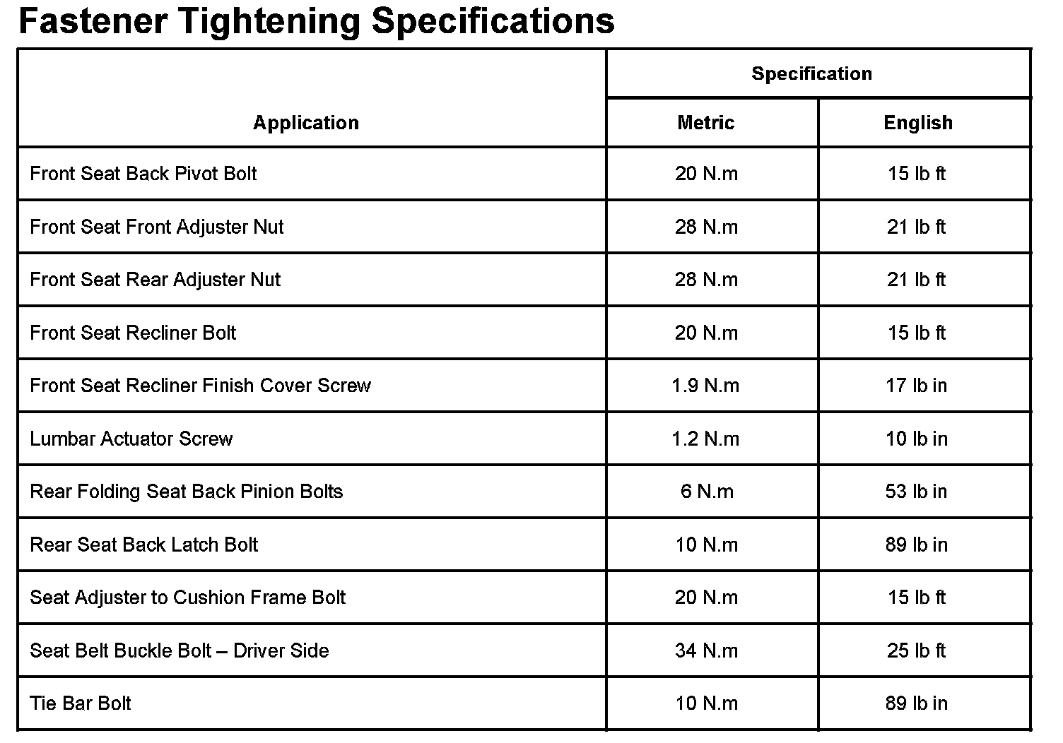 Seats: Specifications