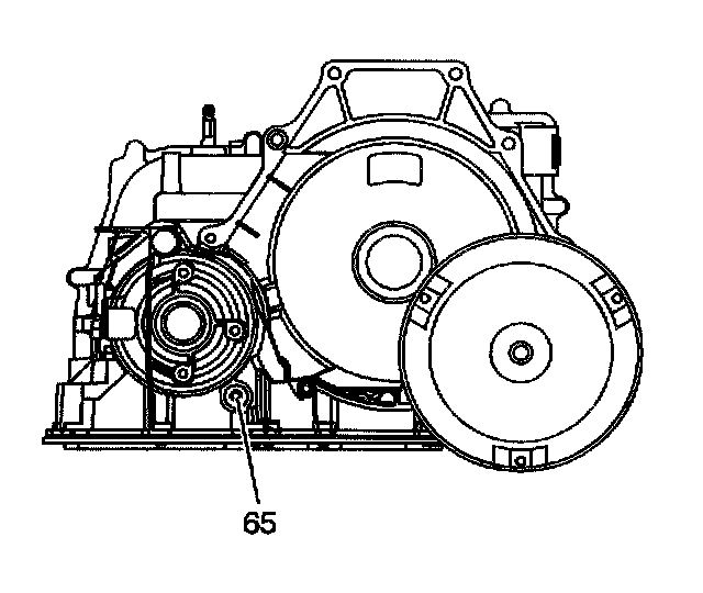 The oil level control plug (65) is located on the torque converter side of the transmission.