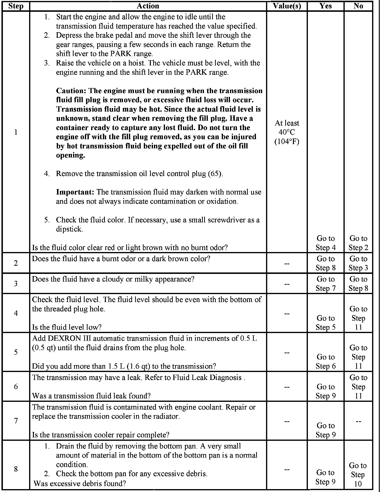 Fluid - A/T: Testing and Inspection