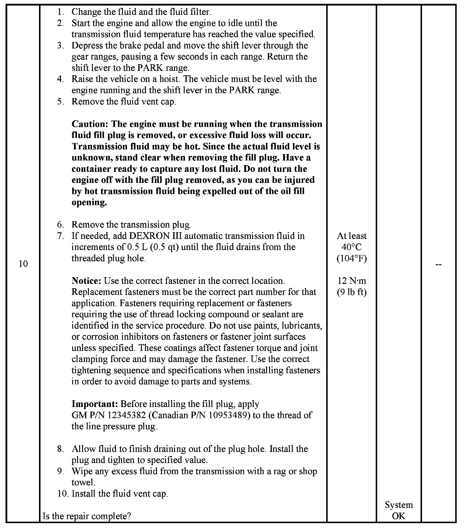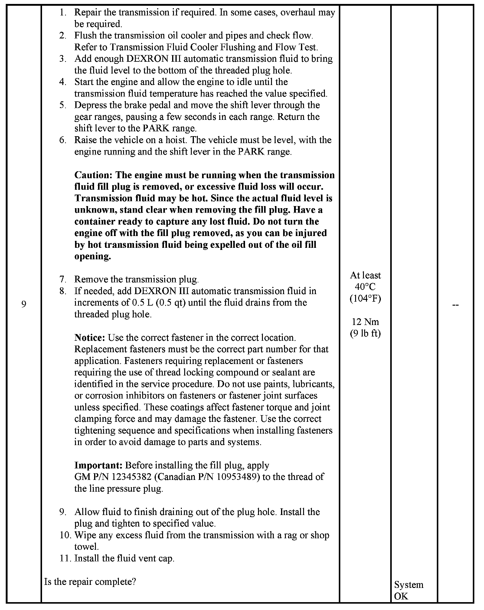 Transmission Fluid Checking Procedure