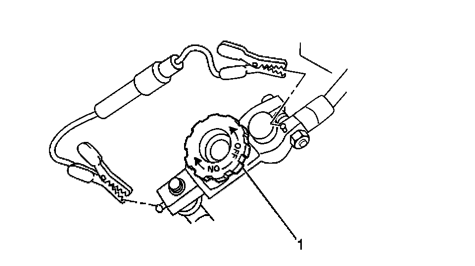 9. Turn the J 38758 knob to the OFF position. The current flows through the jumper wire.