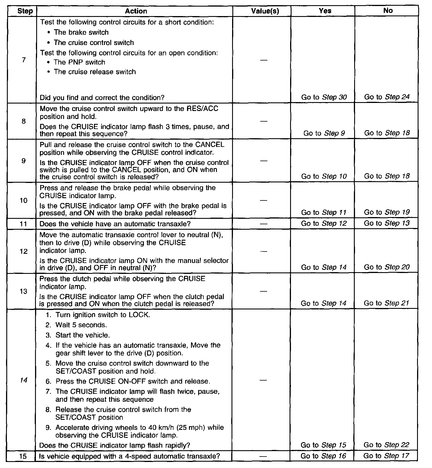 14. This step checks the vehicle speed circuit (VSS).