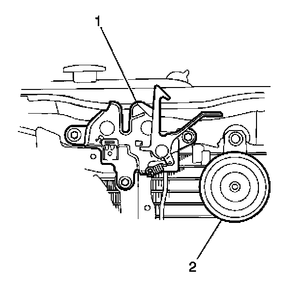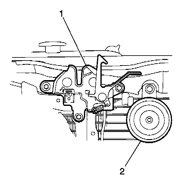 2. Install the horn (2) and bracket to the vehicle. Secure the bracket with the bolt.