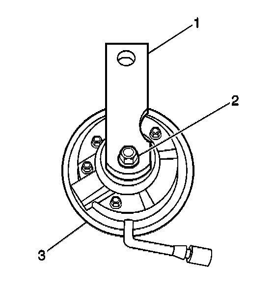 1. Install the horn (3) to the bracket (1), if removed. Secure the horn with the nut (2).