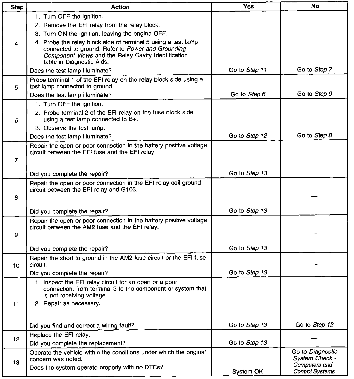 - The EFI relay electrical contacts may be pitted or sticking. Replace the EFI relay if tapping gently on the relay or wiggling the relay causes a change in the relay's operation.