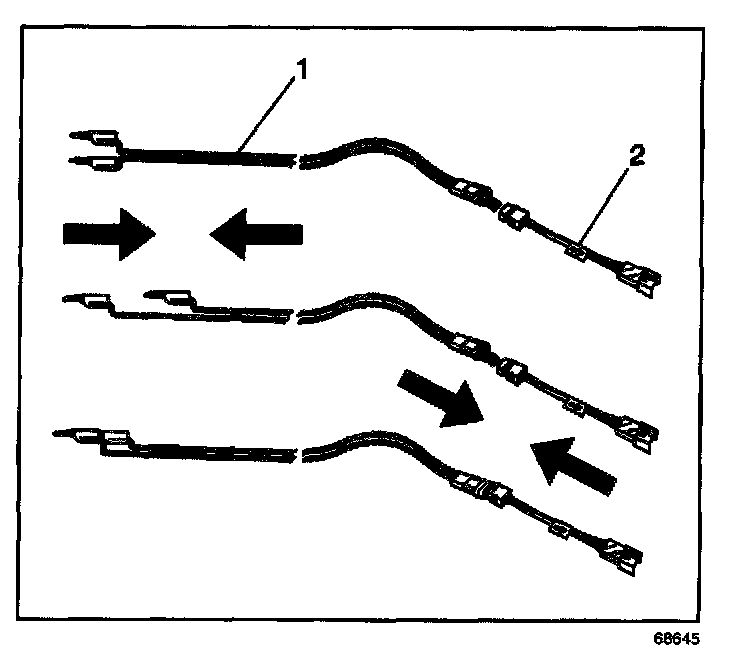 6. Connect the appropriate pigtail adapter (2) to the SIR deployment harness (1).
