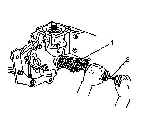 12. Remove the differential carrier side oil seals using the J 29369-2 (1) and the J 23907 (2).