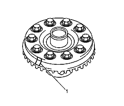 9. Align the reference marks (1) on the differential case and the ring gear.