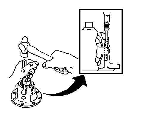 3. Use a standard drift punch and hammer in order to install the pinion shaft roll pin into the differential carrier and the pinion shaft.