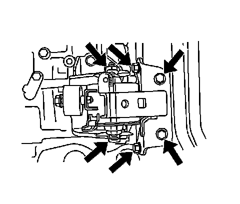 4. Install the left engine mount with the 5 bolts and nut.