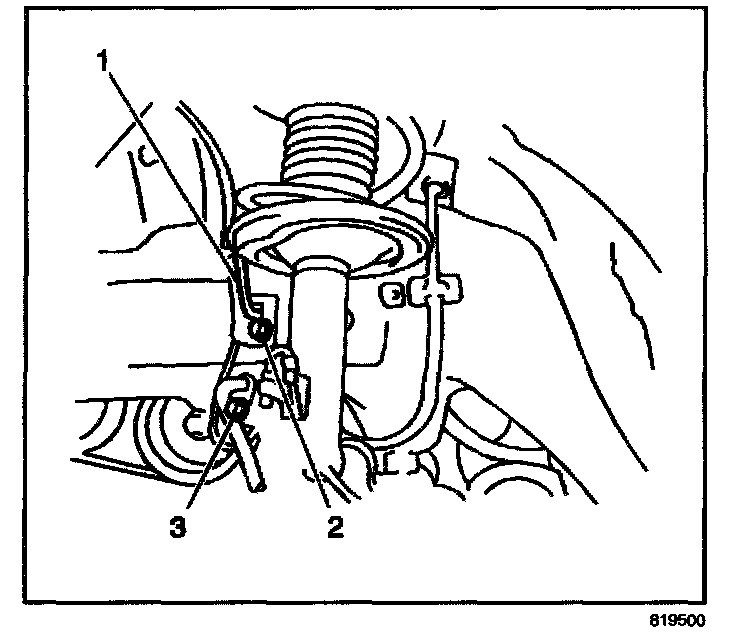 1. Install the wheel speed sensor (2) to the steering knuckle. Secure with 1 bolt.