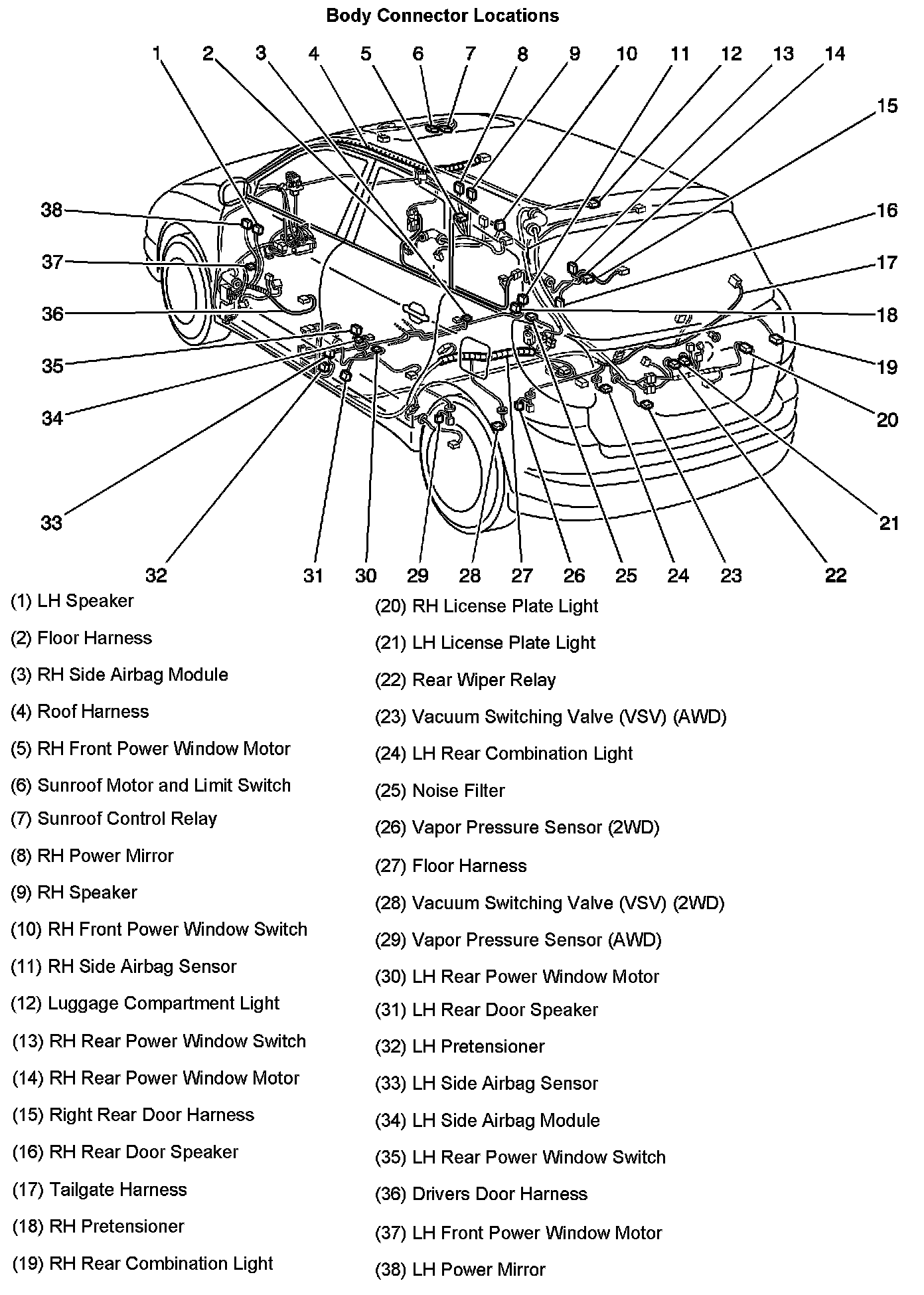 Body Connector Locations: