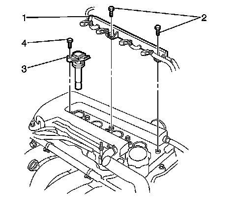 4. Remove the bolt (4) securing each ignition coil from the cylinder head cover.