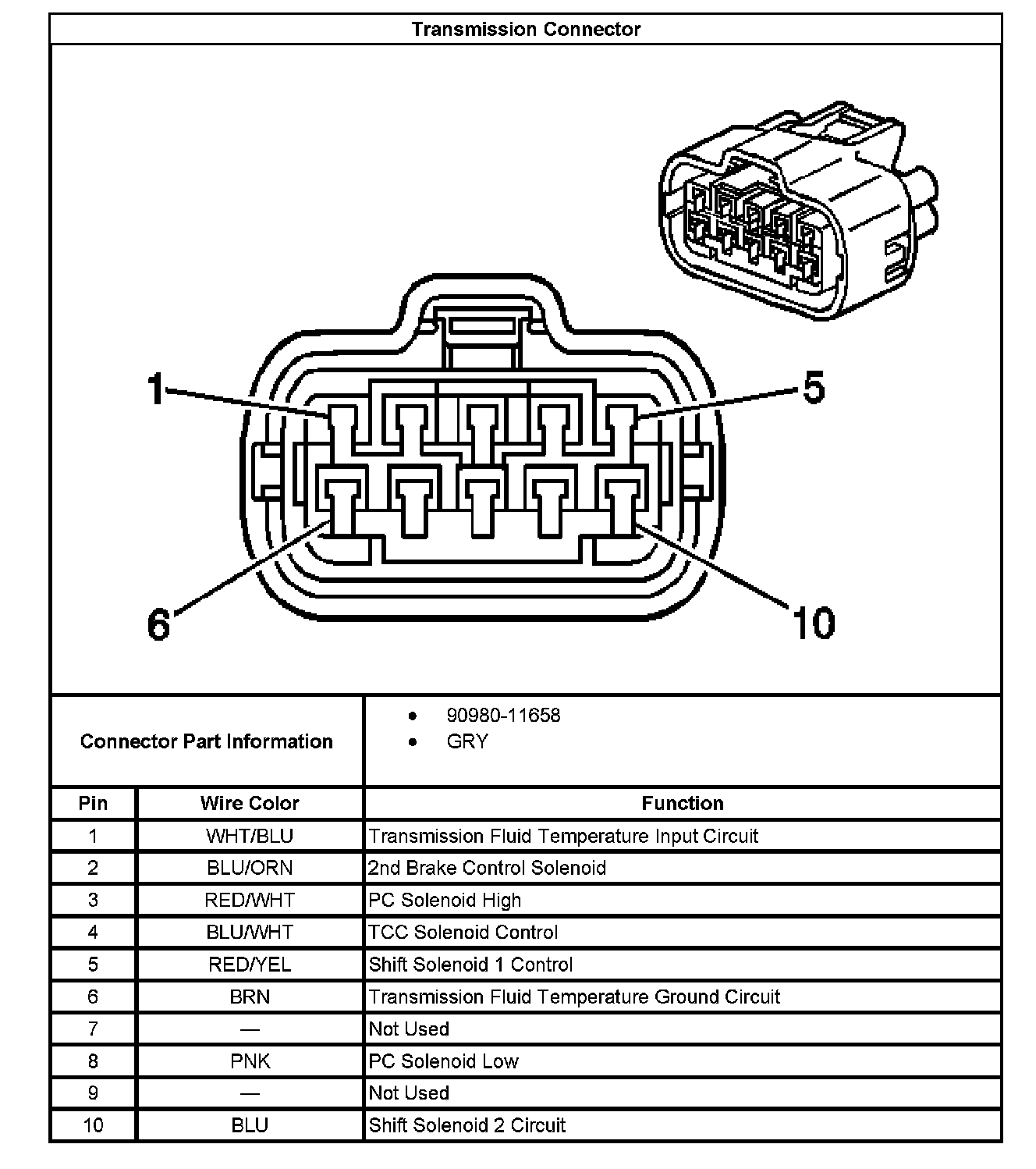 Automatic Transmission External Component Connector End Views
