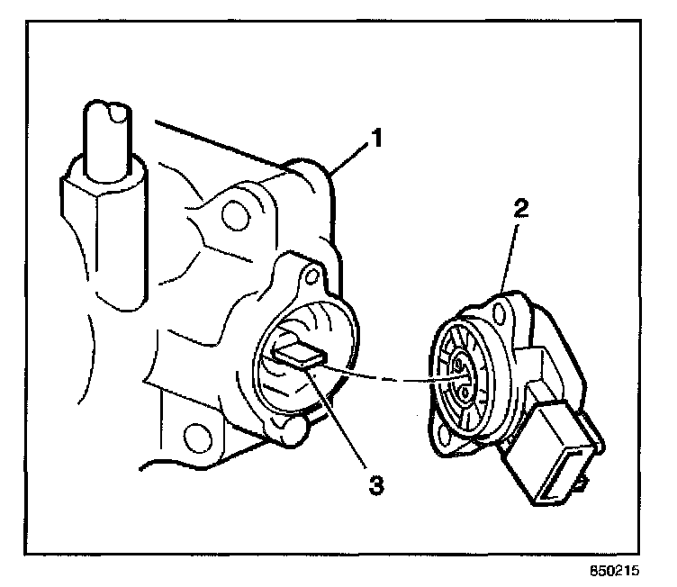 1. Align the throttle shaft (3) with the slot in the TP sensor (2).