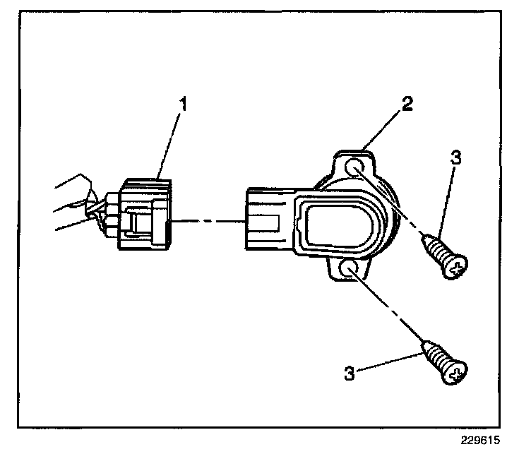 2. Remove the 2 fasteners (3) from the throttle position (TP) sensor (2).