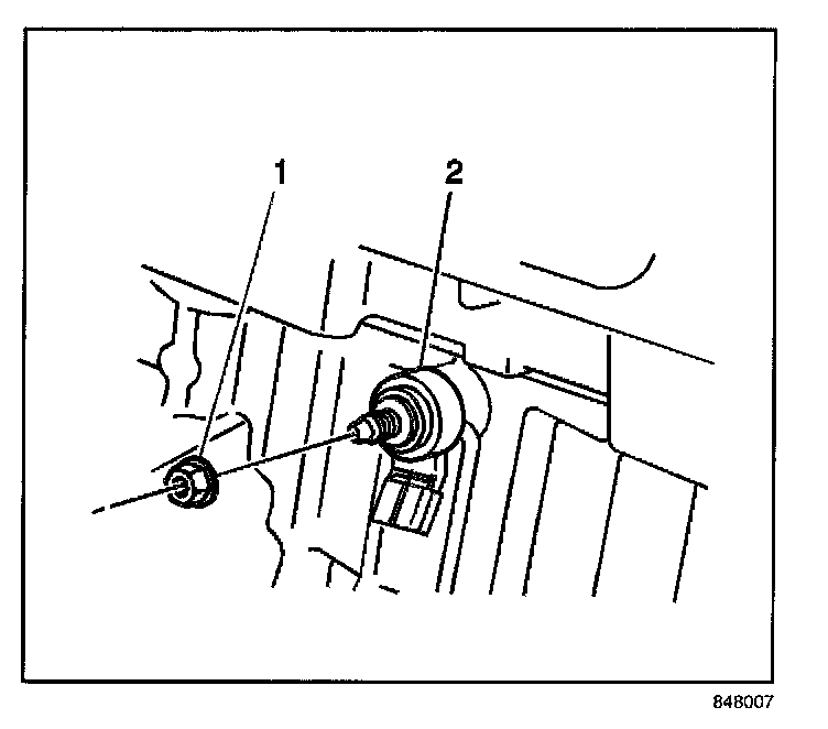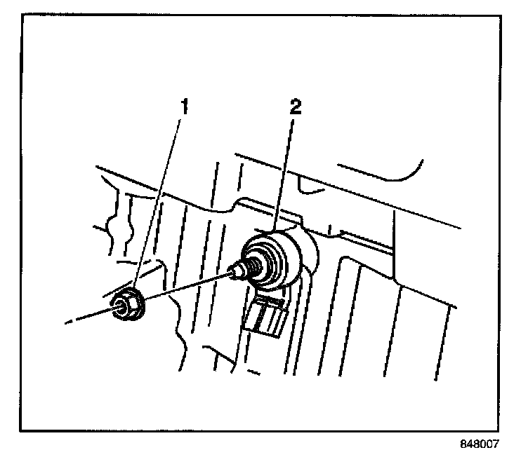 3. Remove the nut (1) securing the KS (2) to the engine block.
